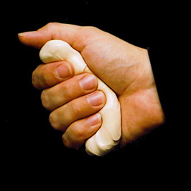 Hold putty as shown and squeeze as firmly as you can. Hold for a few seconds and repeat with the other hand.